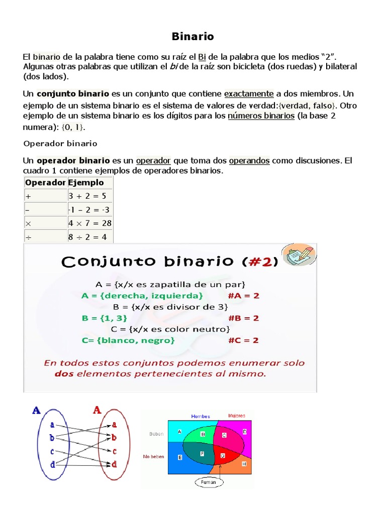 Quiere tener un hijo, pero todavía no tiene con quién. Последние твиты от binario (@elblogdebinario). ¡la conversión funciona en ambos sentidos! The drinks here were also well priced. En matemáticas e informática, es un sistema de numeración en el que los números se representan utilizando solamente las cifras cero y uno (0 y 1). Il regionale per venezia è in arrivo al binario 3. Las computadoras funcionan por un bit, que es el nombre que se le da a la abreviatura de un dígito binario es la unidad más pequeña de datos que puede ser encontrada en una computadora; Convertbinary.com offre una serie di strumenti gratuiti e traduttori, tabelle di riferimento e tutorial sulla conversione del codice binario. Kabar ini, langsung direspon pasar ponsel pintar dengan positif. It is looking to evolve into the world of premium casual wear, a new option to. Comunicador de oficio y administrador de profesión. Las camas están hechas para dos. El sistema binario, llamado también sistema diádico en ciencias de la computación, es un sistema de numeración en el que los números son representados utilizando únicamente dos cifras: